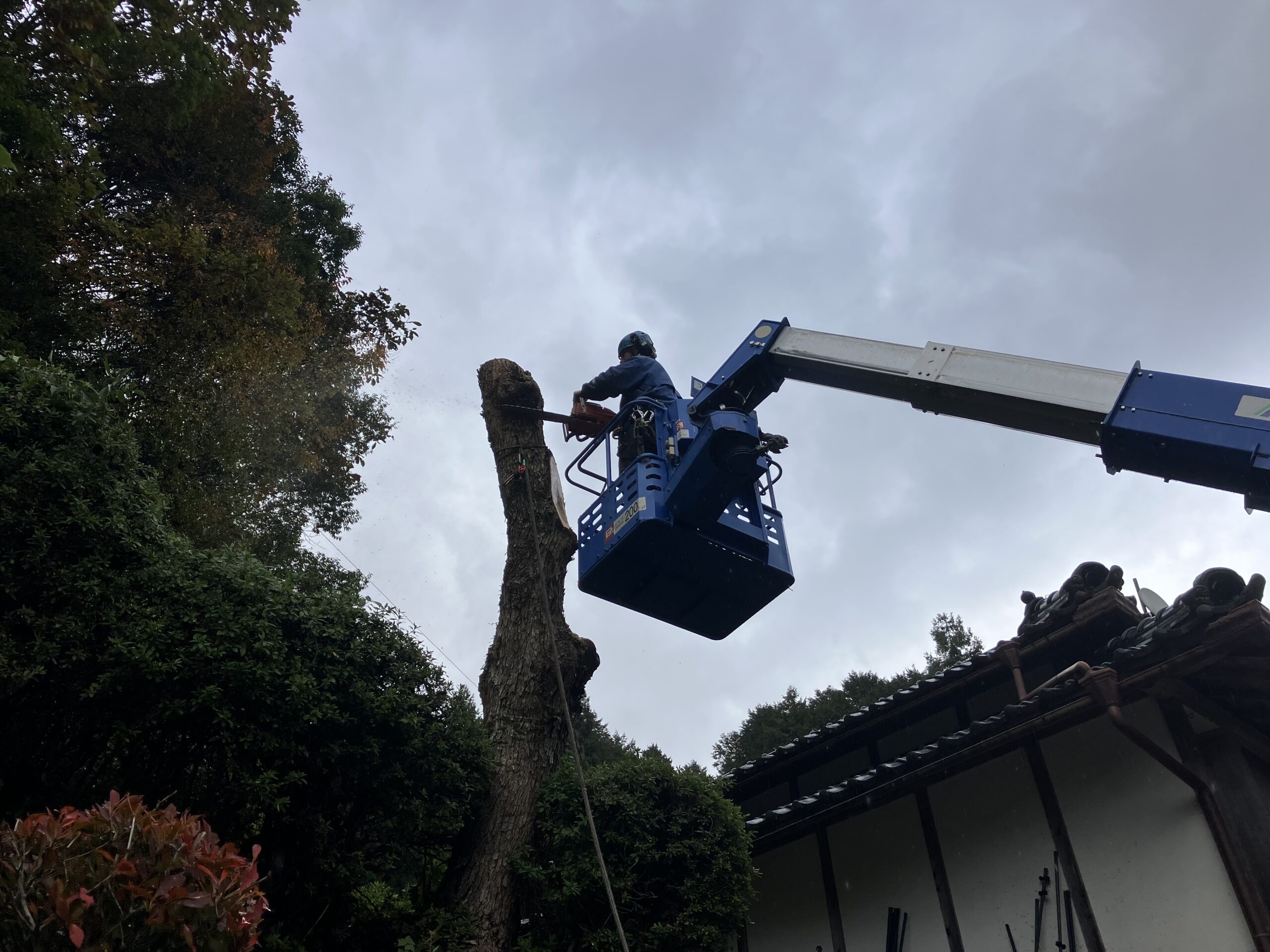 福知山市大江町にて住宅横の楠木を伐採しました。