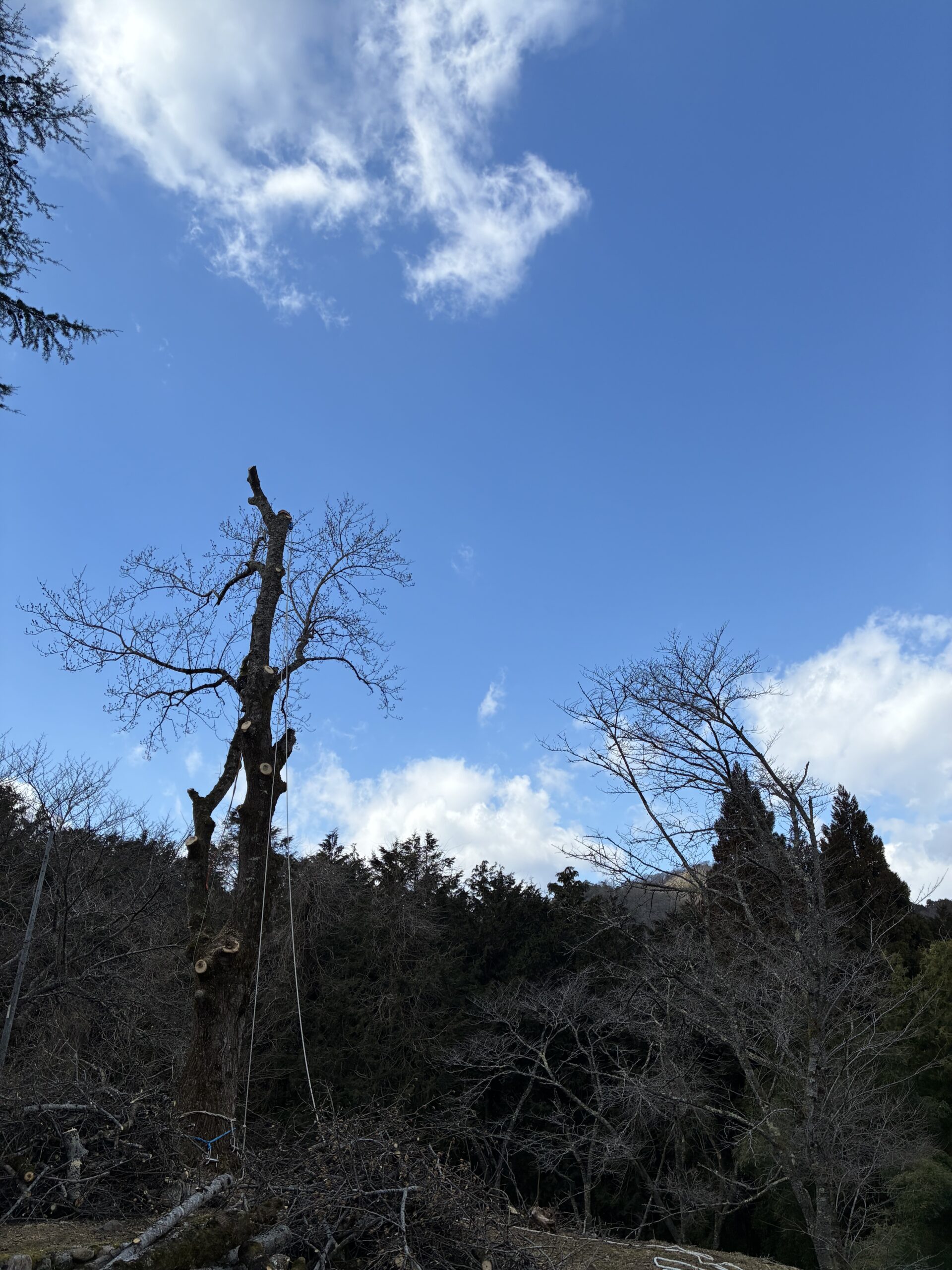 綾部市にてユリの木の伐採を行いました。 石垣の上に立っていて石垣を崩す恐れがある為 伐採の依頼を頂きました。 北米原産のユリの木が何故ここにあるのでしょうか? 無事伐採作業完了です。