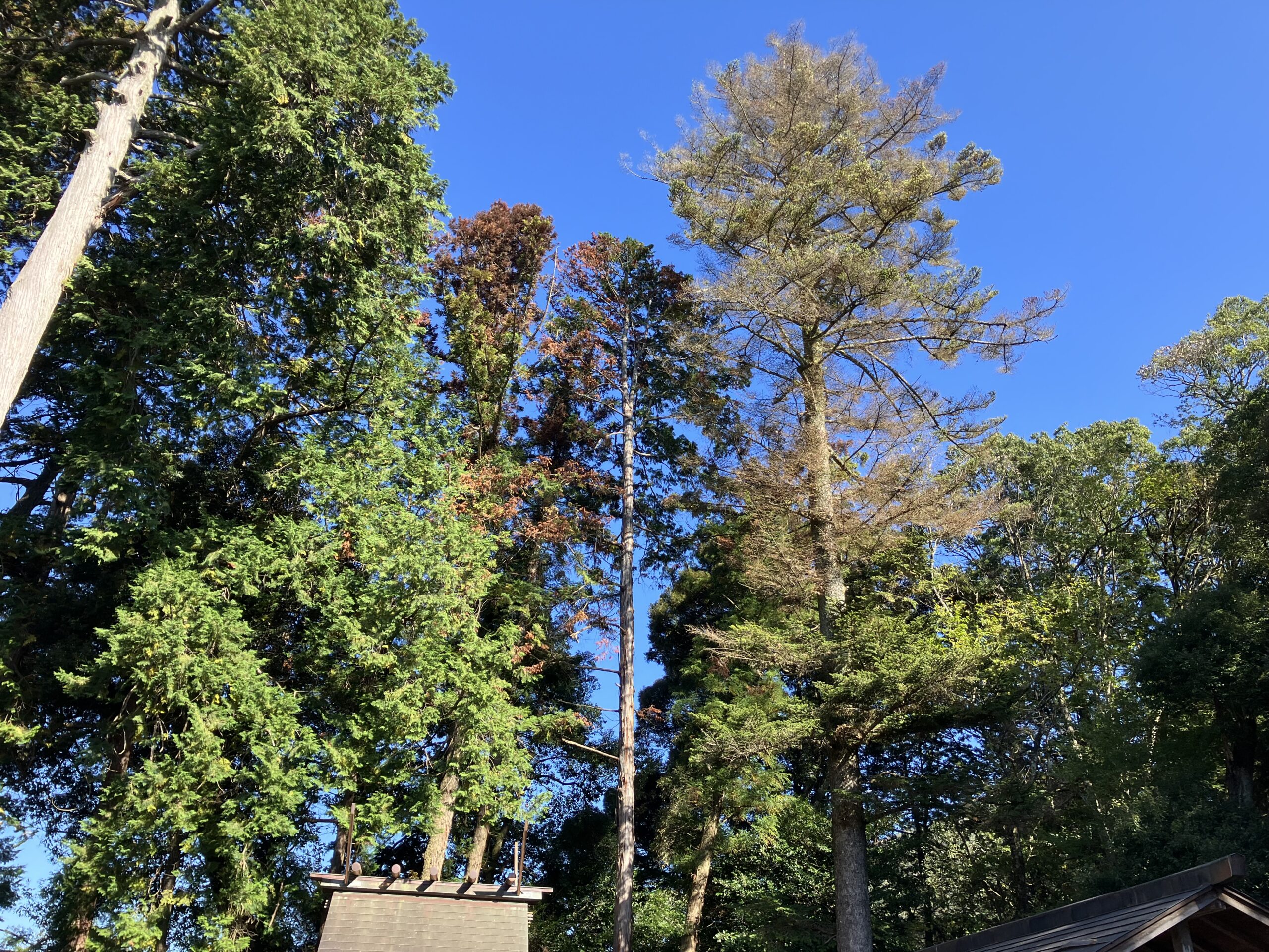 福知山市大江町の元伊勢外宮豊受大神社様から伐採の依頼をいただきました。杉2本と桧1本とモミの木が枯れています。杉と桧はチルホールを使用し牽引伐採モミの木は伐倒するスペースが無い為、リギング技術を用いた